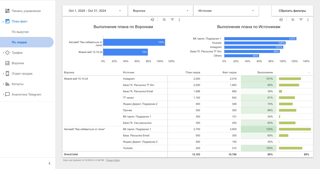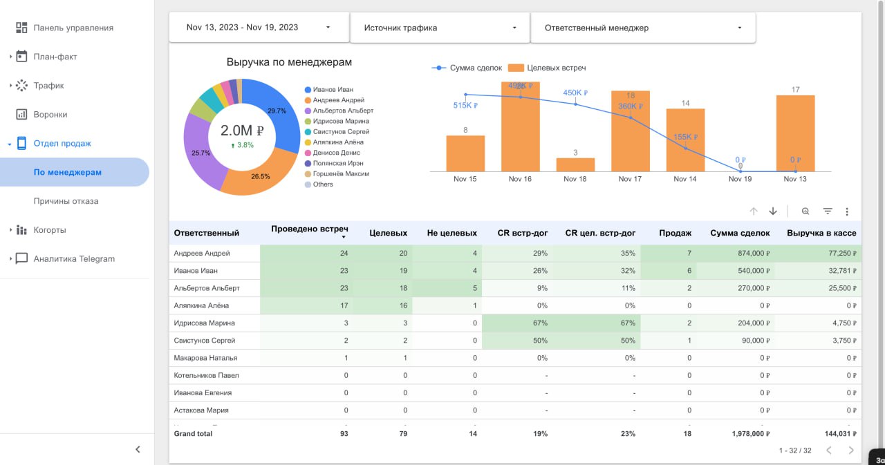 Подготовили отчеты для контроля в реальном времени результативности >50 менеджеров отдела продаж