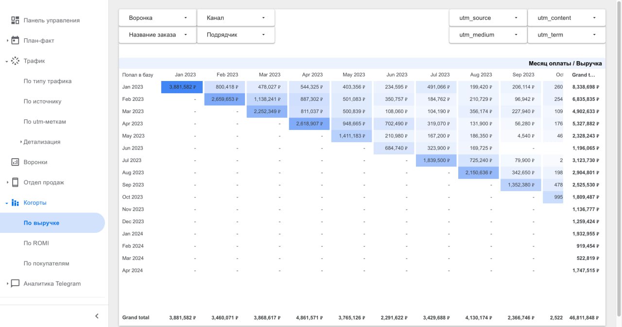Предложили и подготовили отчеты, отражающие результативность маркетинга и отдела продаж
