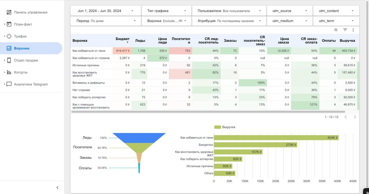 Настроили сбор данных о лидах и продажах из AmoCRM